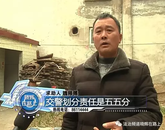 魏师傅:对方是前四后八货车, 我是个小货车,交警责任划分是五五分,就是双责。
